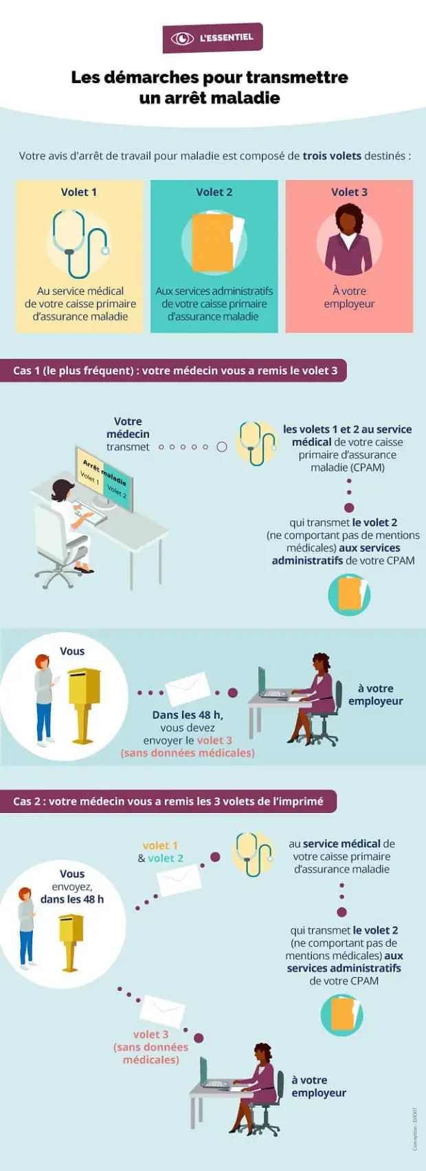 Si votre état de santé ne vous permet pas d’aller travailler, vous devez consulter votre médecin, afin que celui-ci vous transmette un arrêt de travail. Ce dernier devra être transmis dans les 48 heures. Lire la suite.